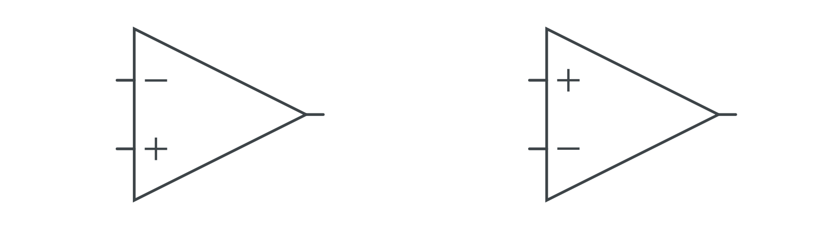 If you continue with analog you'll eventually see a slightly different op amp symbol that has two extra lines coming out of it for the power connections, but the simpler op amp symbol that we're using is much more common.