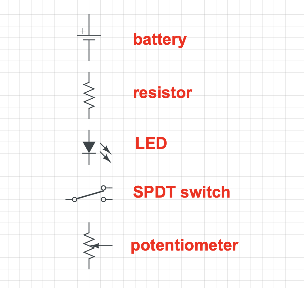 All of the computer-drawn schematics and symbols on this page were made with CircuitLab which costs money unless you work somewhere or go to a school that has a school- or organization-wide license. NYU students - yes we have one! That said, I'd say hold off on signing up and trying it for now and first get comfortable drawing schematics by hand.